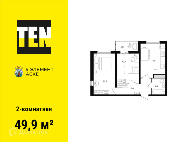 Предлагается 2-комнатная квартира в современном жилом комплексе "ЖК 5 элемент" 🏢.