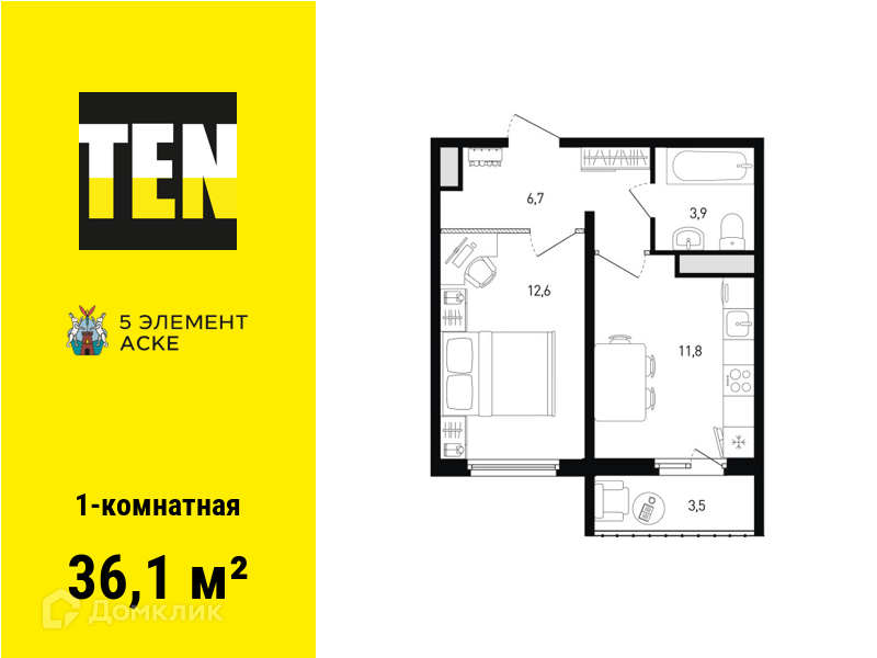 Предлагается 1-комнатная квартира в современном жилом комплексе "ЖК 5 элемент" 🏢.