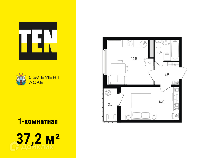 Продается 1-комнатная квартира в современном жилом комплексе "ЖК 5 элемент" 🏢.