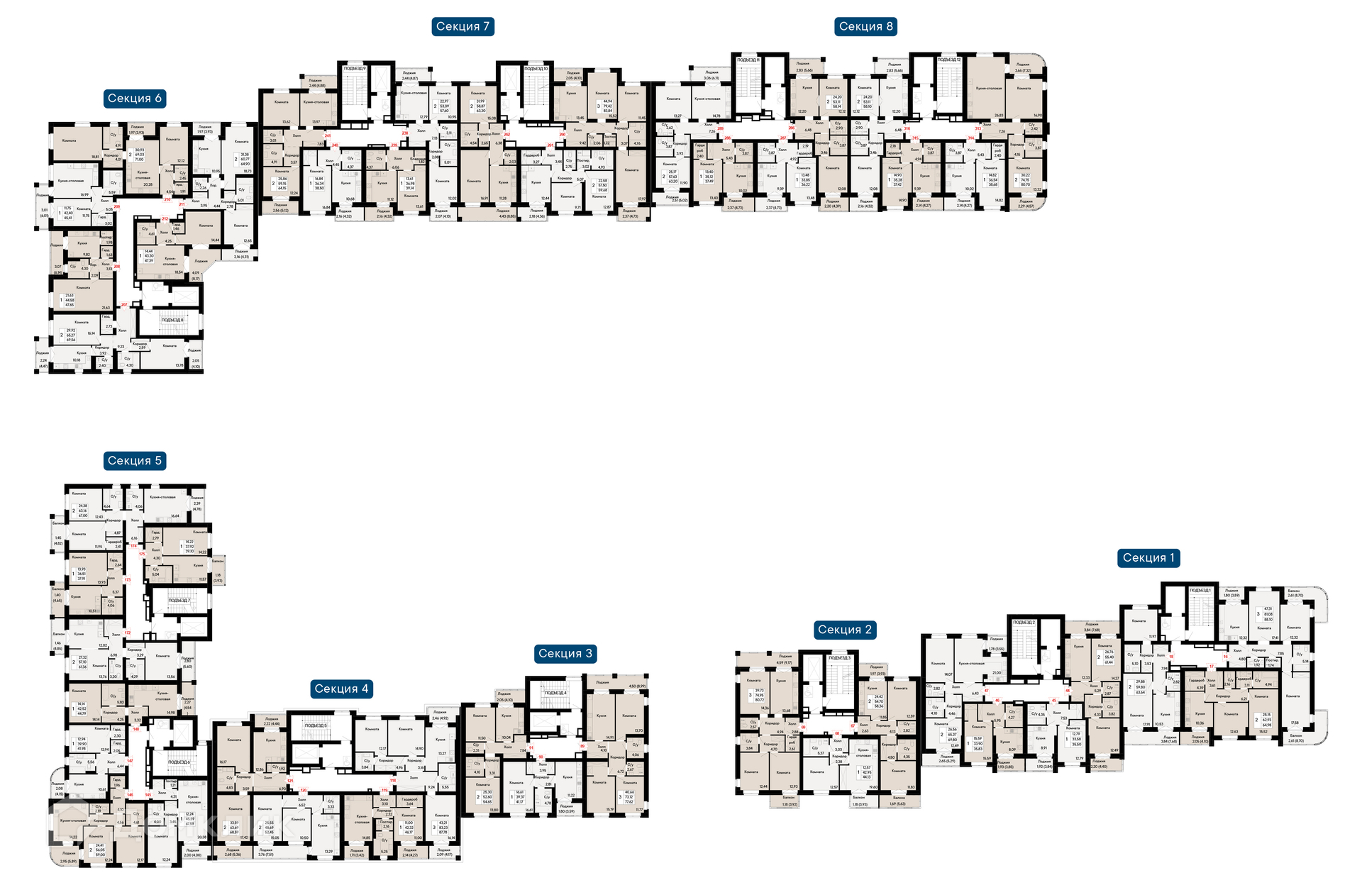 Площади квартир