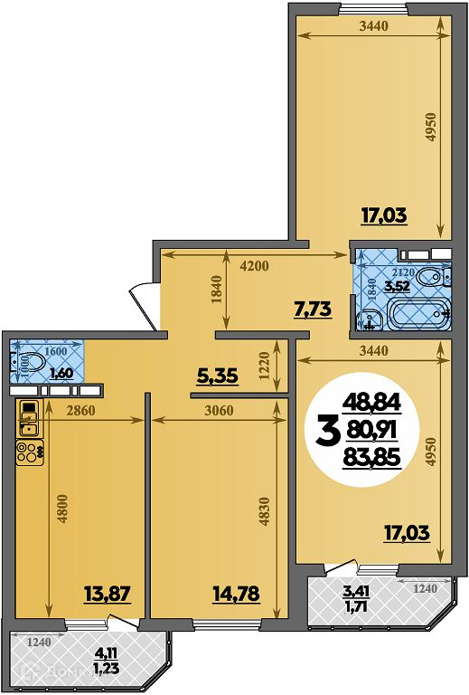 - ✅ Кухня: 13.87 м² — место для кулинарных шедевров.