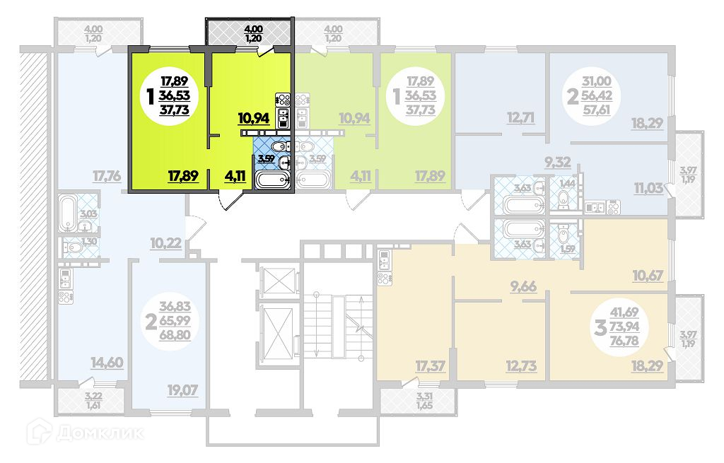 - Общая площадь: 37.73 м²