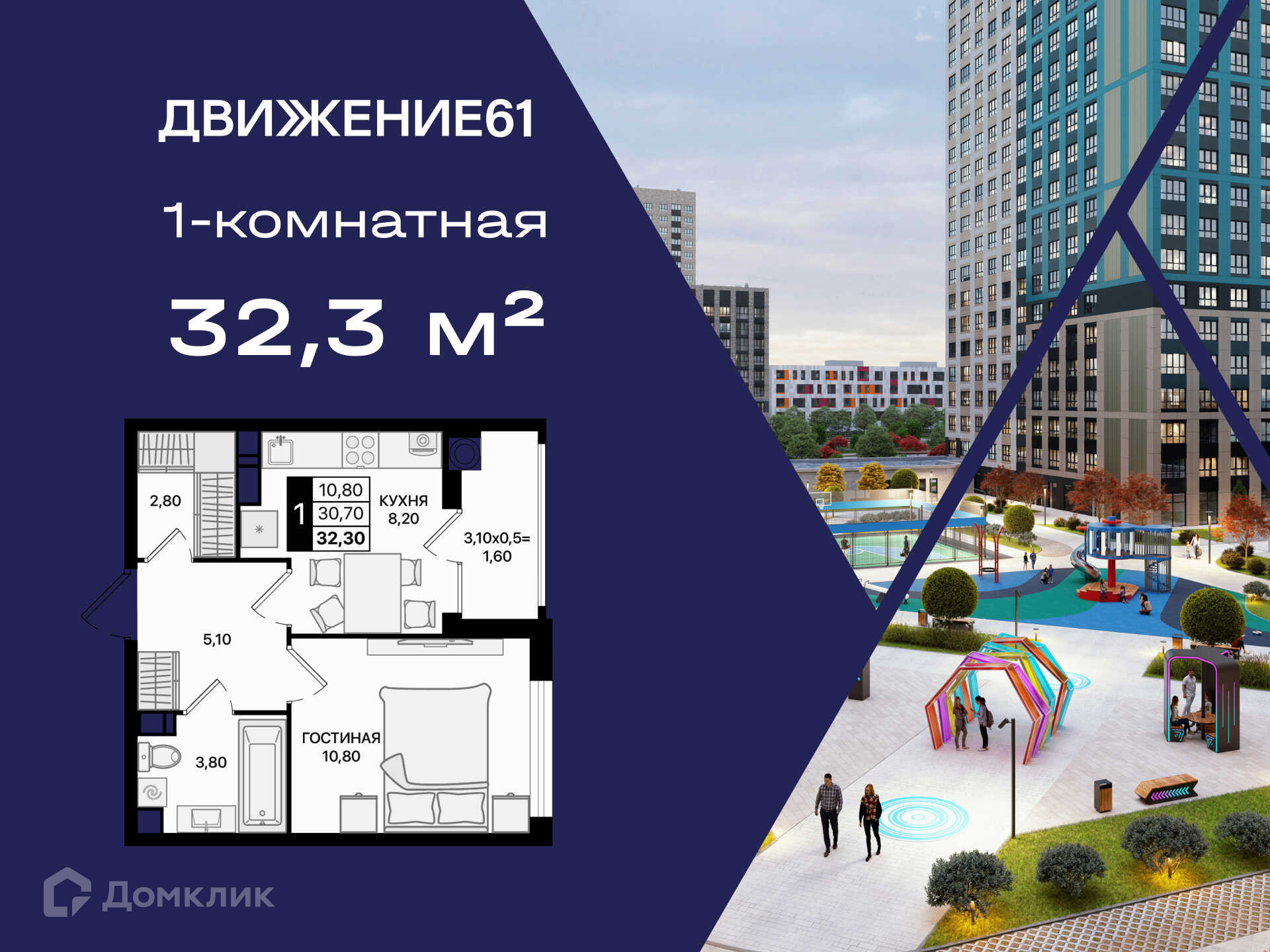 ЖК «Движение61» – проект в «Новом Ростове», на месте Старого аэропорта. Расположение, уникальное для города: одинаково близко и удобно добраться как до центра города, так и на выезд из Ростова, в сторону Черного моря. Территория комплекса объединяет новые технологии и близость к природе. Днем здесь царит спокойствие: можно посидеть на лавочке или отдохнуть на качелях в окружении цветущей лаванды и рябины. Но когда наступает вечер, «Движение61» буквально оживает: включаются фонари, загорается яркая подсветка. Интерактивные экраны и световые инсталляции создают настоящий вау-эффект. Бульвар из тихого уголка превращается в центр жизни квартала. Дворы комплекса закрыты для машин. Это идеальное место для отдыха на свежем воздухе или тренировки в современной спортивной зоне прямо под окнами. А для детей есть безопасные и яркие игровые площадки, от которых они будут в восторге. Актуальность и наличие уточняйте в отделе продаж!