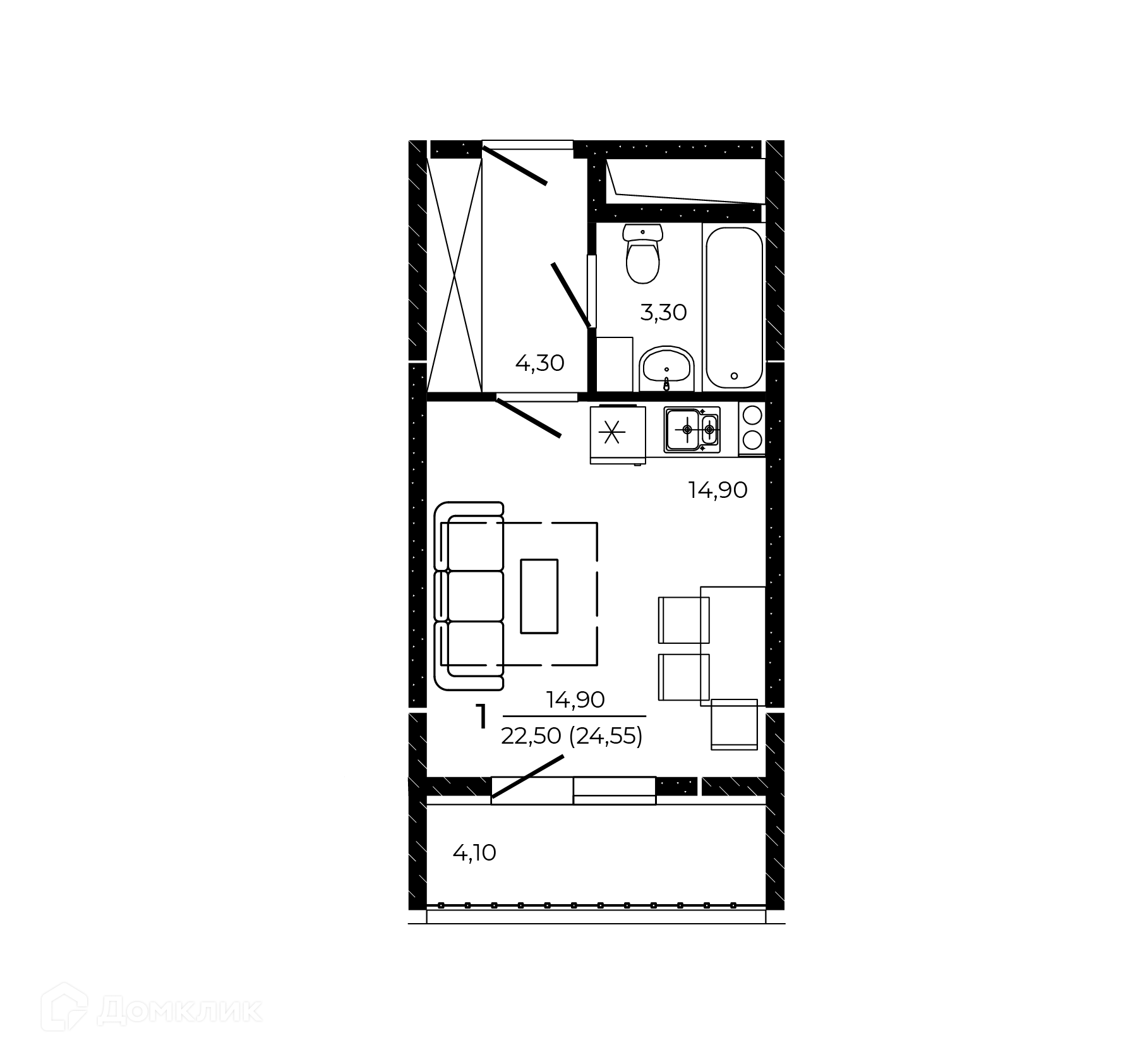 - ✅ Общая площадь: 24.55 м².