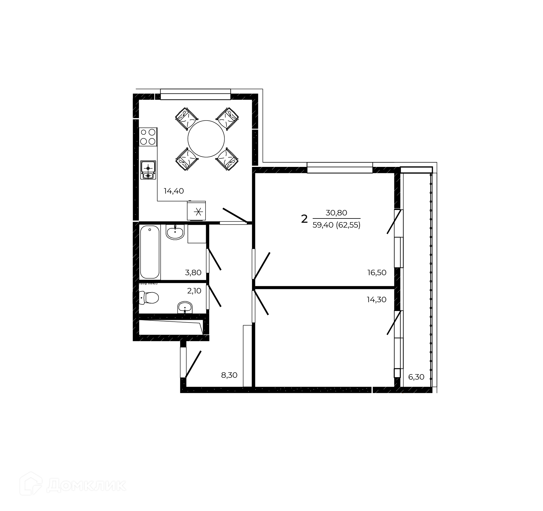 - ✅ Кухня: - м² — место для кулинарных шедевров.