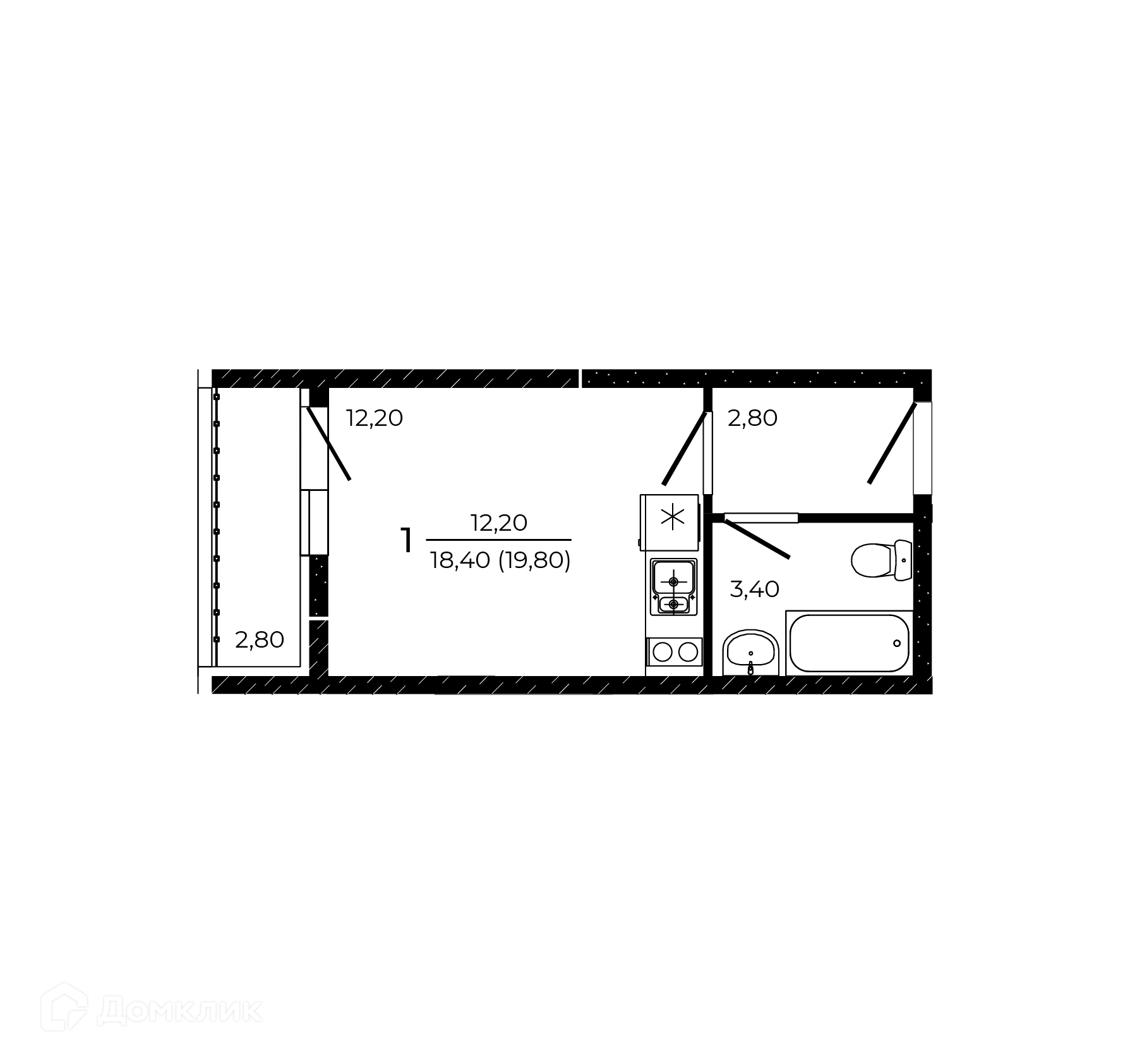 - Общая площадь: 19.8 м²