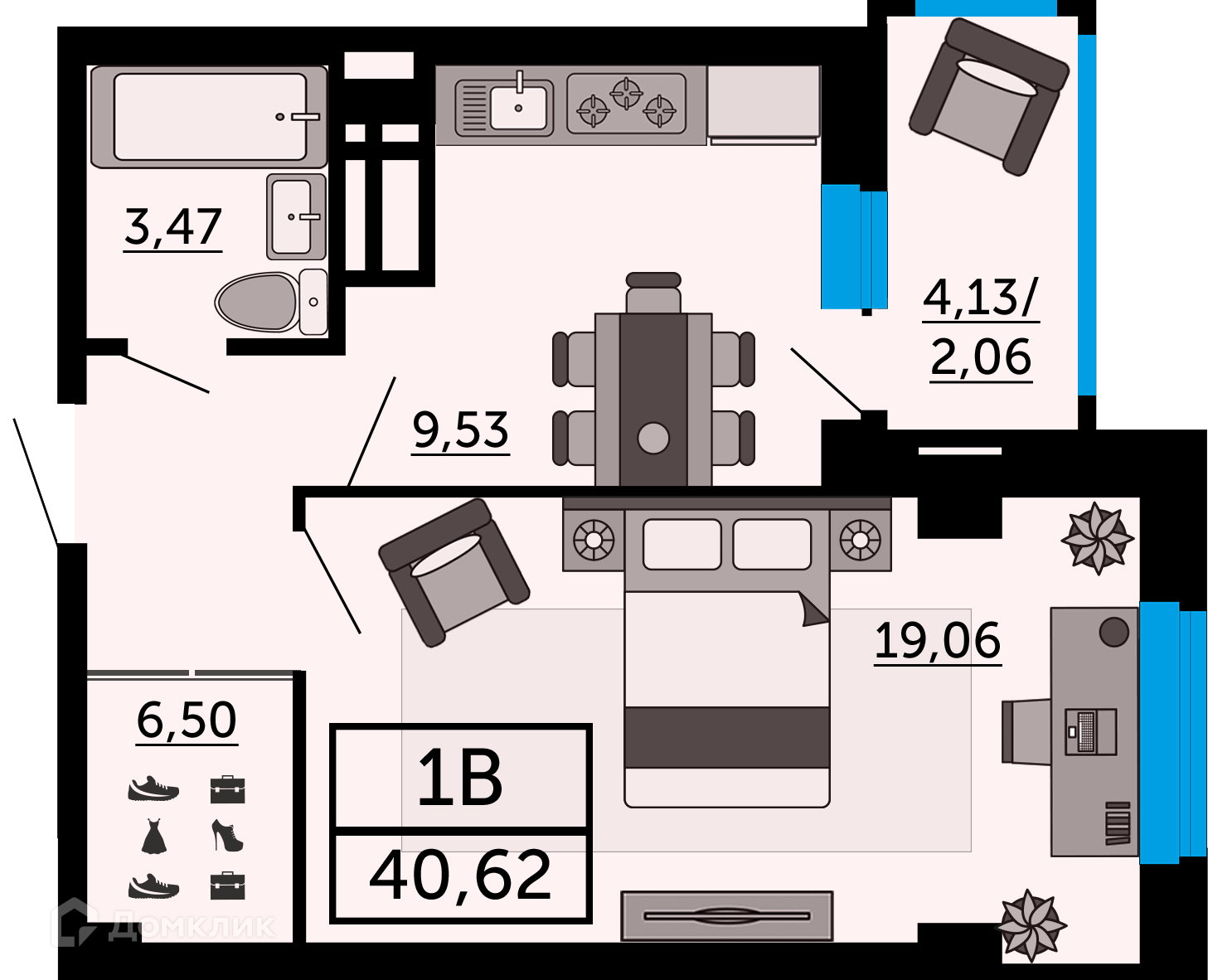 - ✅ Кухня: 9.53 м² — идеальна для семейных ужинов.