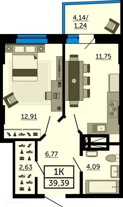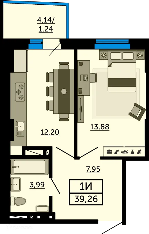 1 комн. квартира в Ростове-на-Дону в ипотеку от 34 219 руб/месяц