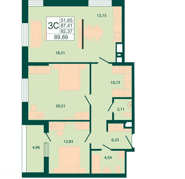 2 комн. квартира в Ростове-на-Дону в ипотеку от 92 931 руб/месяц