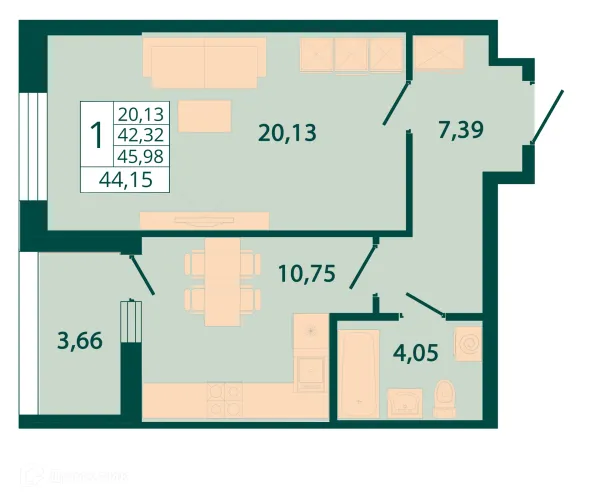 1 комн. квартира в Ростове-на-Дону в ипотеку от 56 959 руб/месяц