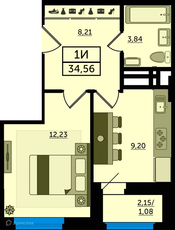 1 комн. квартира в Ростове-на-Дону в ипотеку от 34 831 руб/месяц