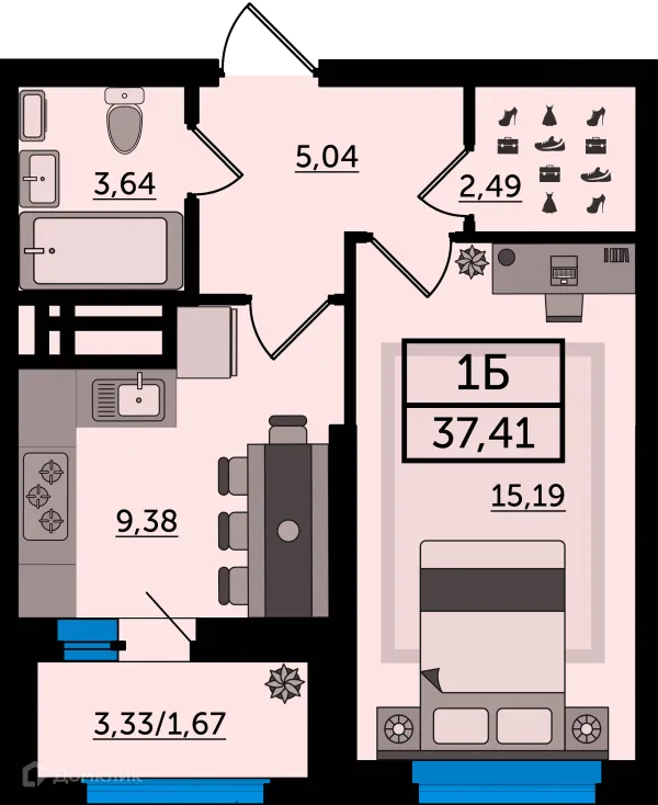 1 комн. квартира в Ростове-на-Дону в ипотеку от 43 027 руб/месяц