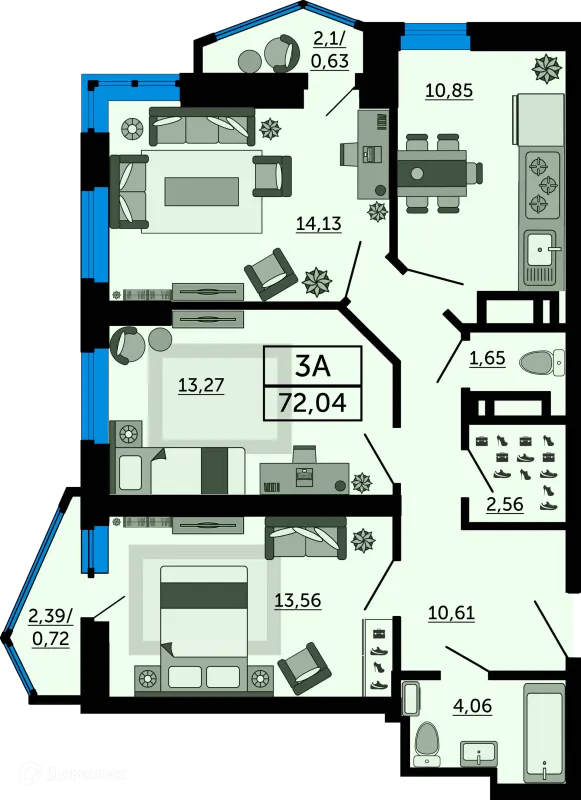 3 комн. квартира в Ростове-на-Дону в ипотеку от 57 063 руб/месяц