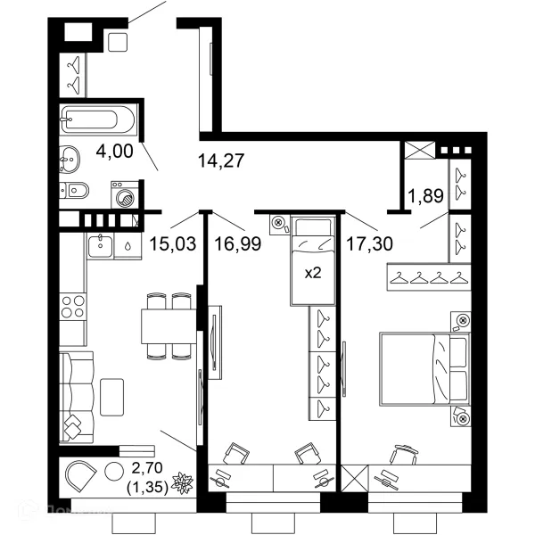 2 комн. квартира в Ростове-на-Дону в ипотеку от 89 156 руб/месяц