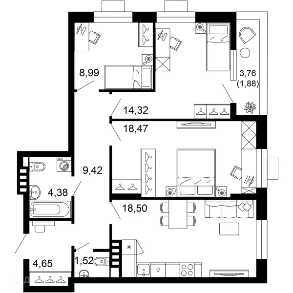 3 комн. квартира в Ростове-на-Дону в ипотеку от 103 663 руб/месяц
