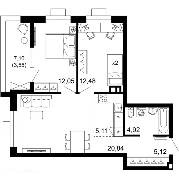 2 комн. квартира в Ростове-на-Дону в ипотеку от 69 692 руб/месяц