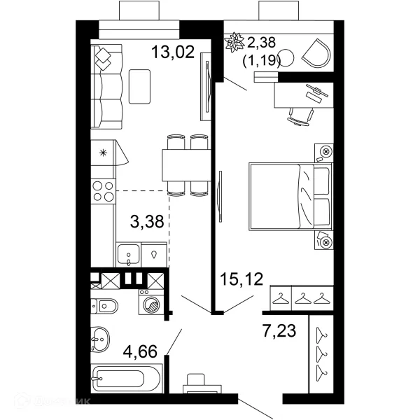 1 комн. квартира в Ростове-на-Дону в ипотеку от 64 013 руб/месяц