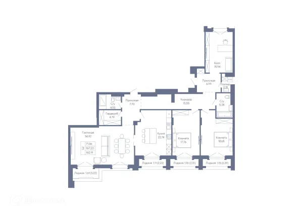3 комн. квартира в Ростове-на-Дону в ипотеку от 560 607 руб/месяц