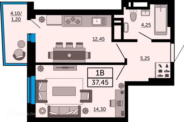 1 комн. квартира в Ростове-на-Дону в ипотеку от 41 087 руб/месяц