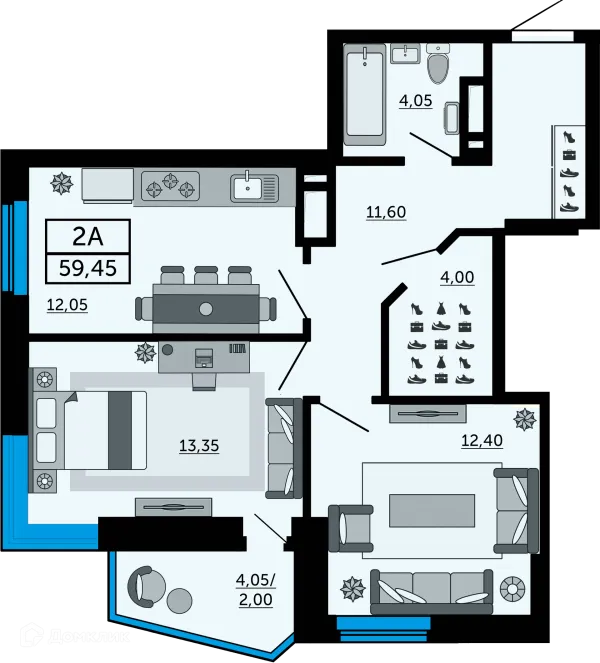 2 комн. квартира в Ростове-на-Дону в ипотеку от 57 793 руб/месяц