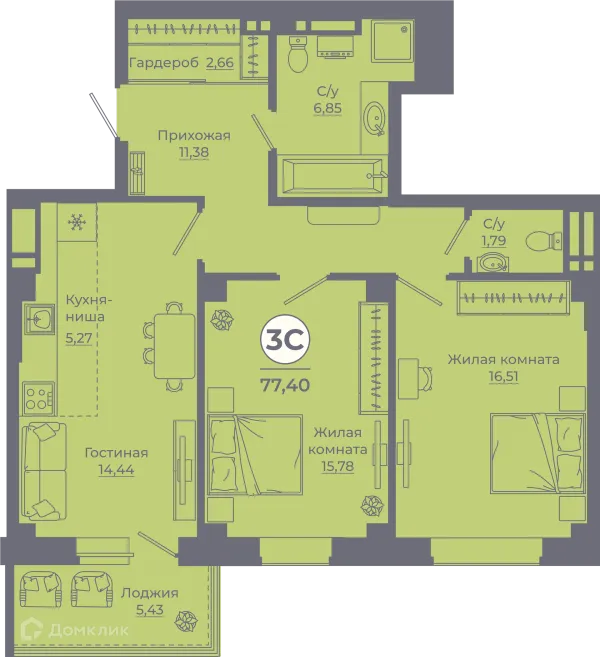 3 комн. квартира в Ростове-на-Дону в ипотеку от 64 096 руб/месяц