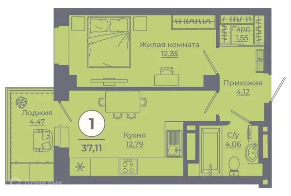1 комн. квартира в Ростове-на-Дону в ипотеку от 35 489 руб/месяц