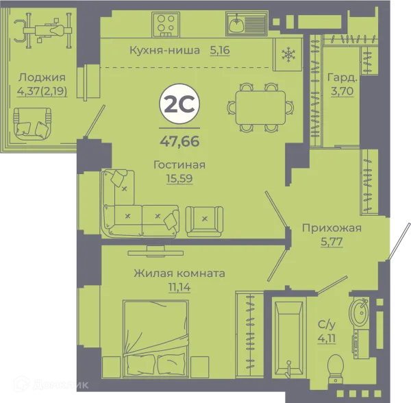 2 комн. квартира в Ростове-на-Дону в ипотеку от 41 797 руб/месяц