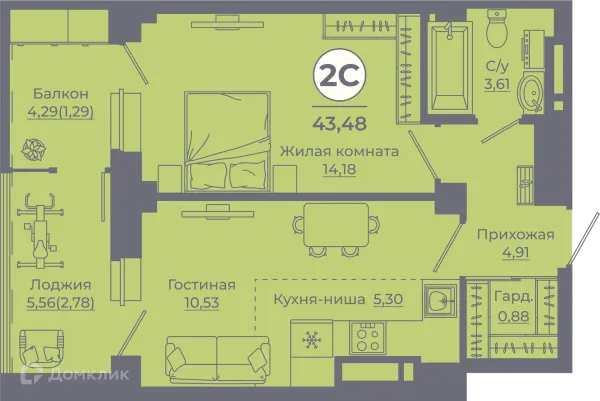 2 комн. квартира в Ростове-на-Дону в ипотеку от 55 508 руб/месяц