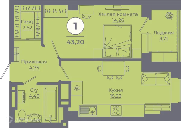 1 комн. квартира в Ростове-на-Дону в ипотеку от 44 377 руб/месяц