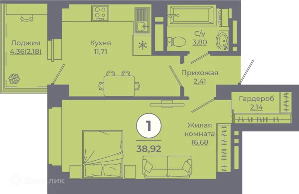 1 комн. квартира в Ростове-на-Дону в ипотеку от 33 406 руб/месяц