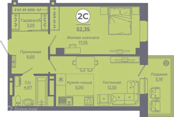 2 комн. квартира в Ростове-на-Дону в ипотеку от 51 852 руб/месяц