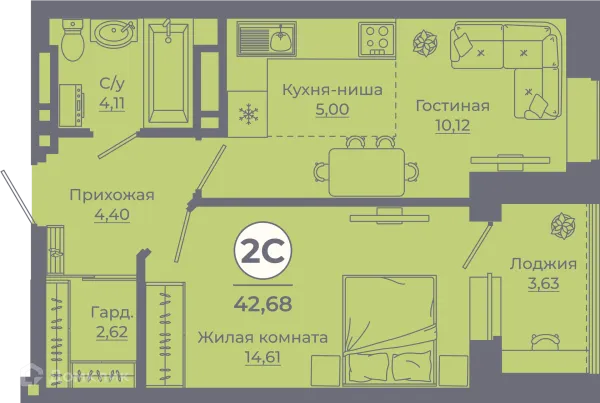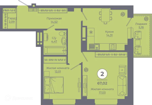 2 комн. квартира в Ростове-на-Дону в ипотеку от 57 199 руб/месяц