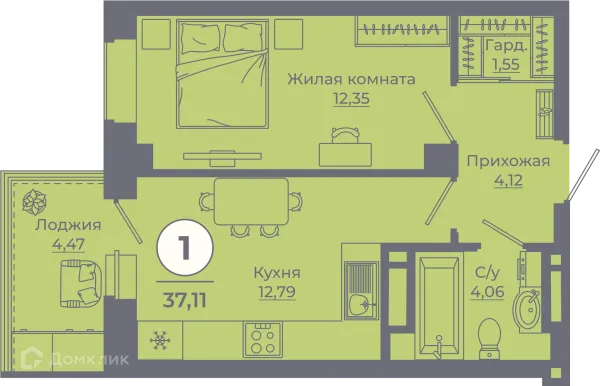 1 комн. квартира в Ростове-на-Дону в ипотеку от 38 559 руб/месяц
