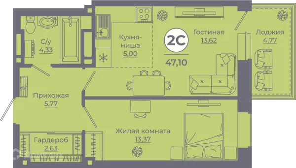 2 комн. квартира в Ростове-на-Дону в ипотеку от 40 872 руб/месяц