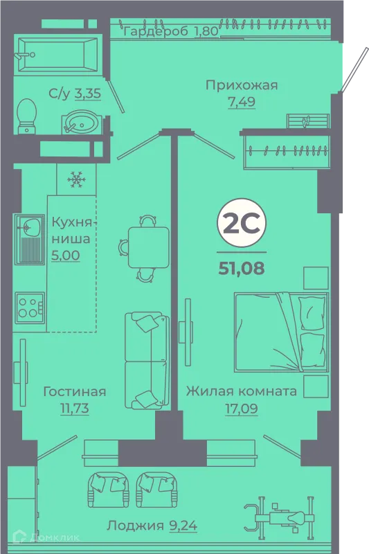 2 комн. квартира в Ростове-на-Дону в ипотеку от 40 103 руб/месяц