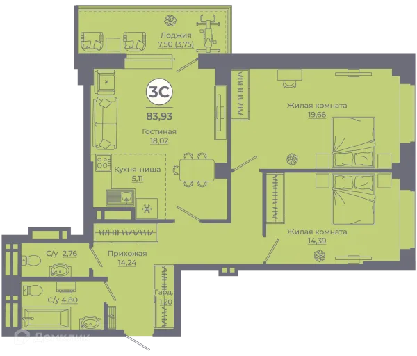 3 комн. квартира в Ростове-на-Дону в ипотеку от 65 673 руб/месяц