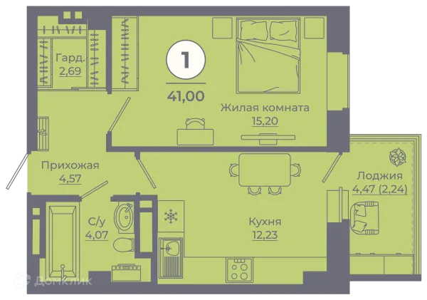 1 комн. квартира в Ростове-на-Дону в ипотеку от 33 949 руб/месяц