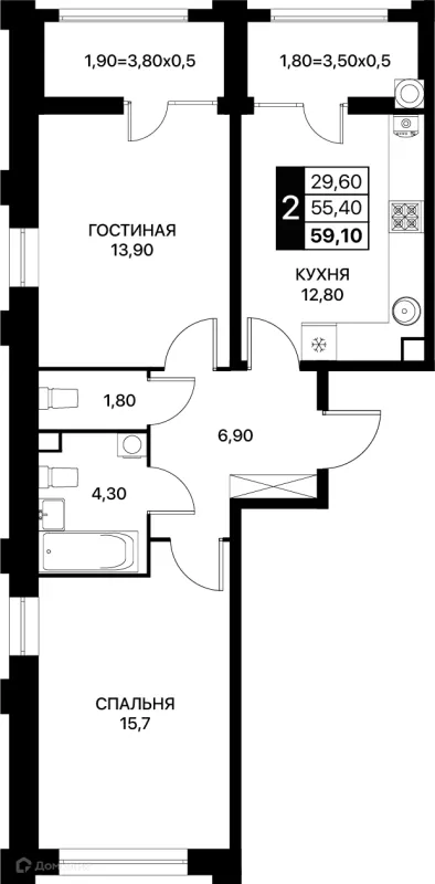 2 комн. квартира в Ростове-на-Дону в ипотеку от 55 024 руб/месяц