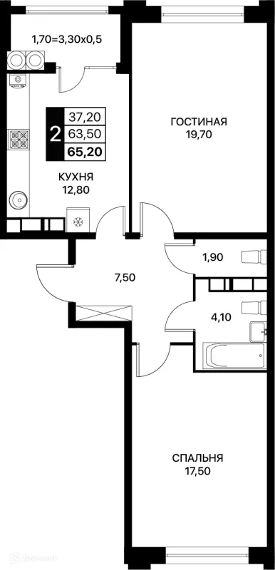 2 комн. квартира в Ростове-на-Дону в ипотеку от 65 989 руб/месяц