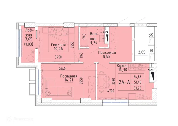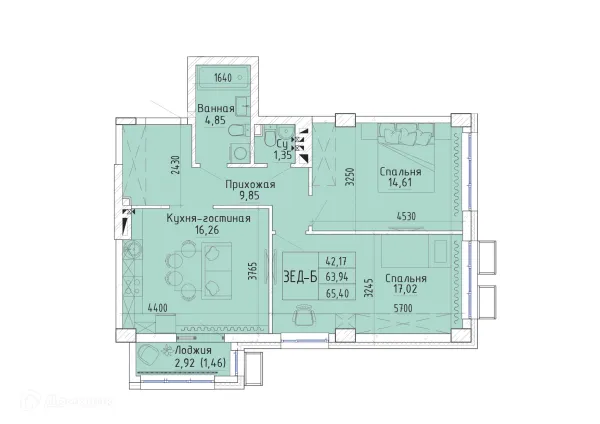 2 комн. квартира в Ростове-на-Дону в ипотеку от 67 401 руб/месяц