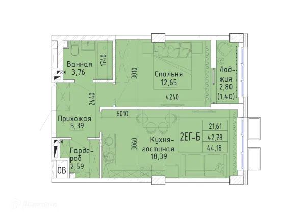 2 комн. квартира в Ростове-на-Дону в ипотеку от 59 758 руб/месяц