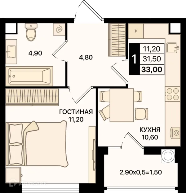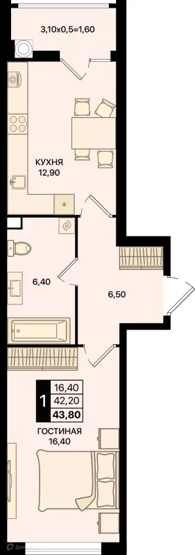 1 комн. квартира в Ростове-на-Дону в ипотеку от 41 805 руб/месяц