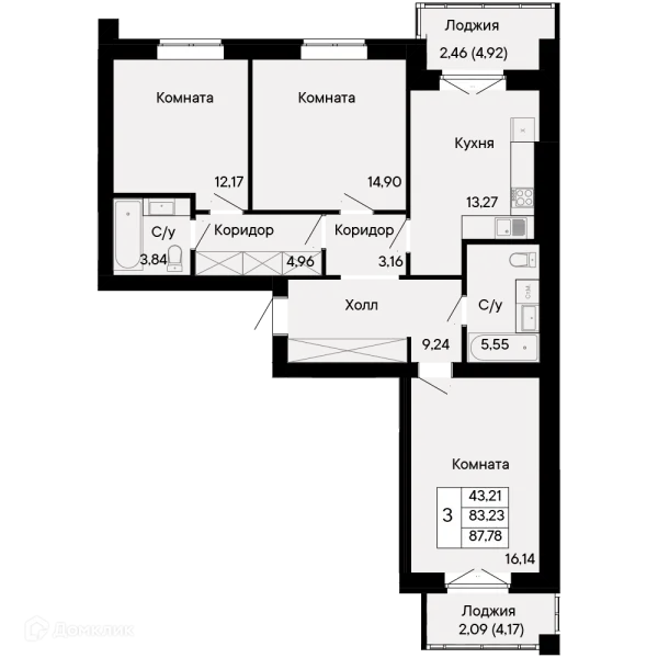3 комн. квартира в Ростове-на-Дону в ипотеку от 99 491 руб/месяц