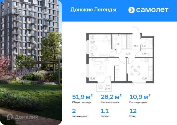 2 комн. квартира в Ростове-на-Дону в ипотеку от 59 100 руб/месяц