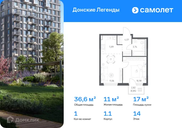 1 комн. квартира в Ростове-на-Дону в ипотеку от 39 501 руб/месяц