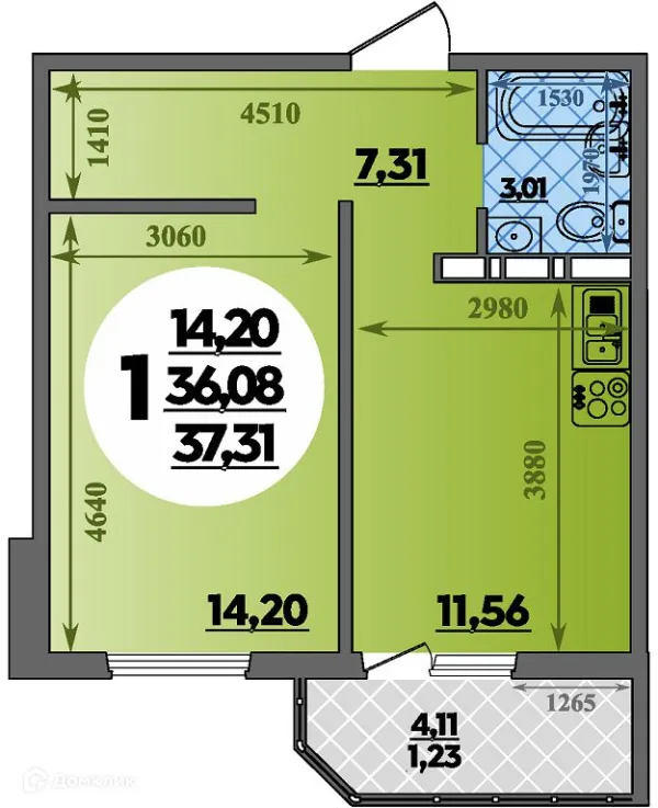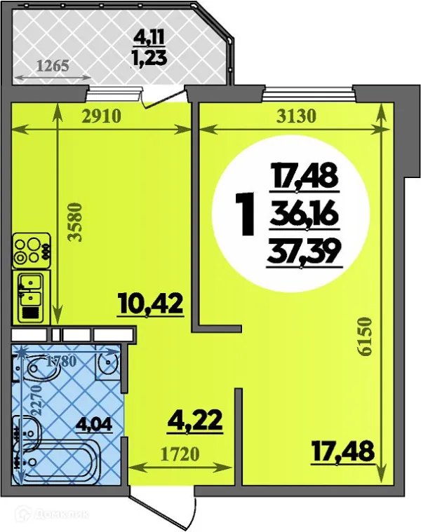 1 комн. квартира в Ростове-на-Дону в ипотеку от 32 261 руб/месяц