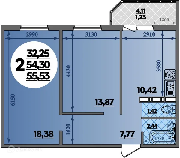 2 комн. квартира в Ростове-на-Дону в ипотеку от 39 580 руб/месяц