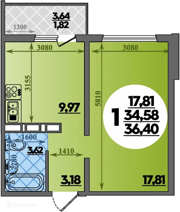 1 комн. квартира в Ростове-на-Дону в ипотеку от 32 197 руб/месяц