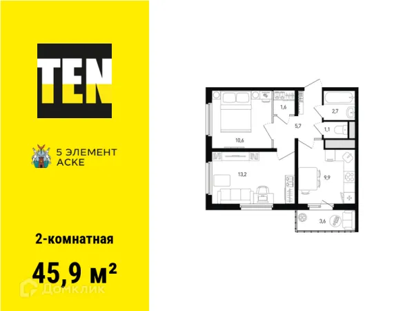 2 комн. квартира в Ростове-на-Дону в ипотеку от 51 198 руб/месяц