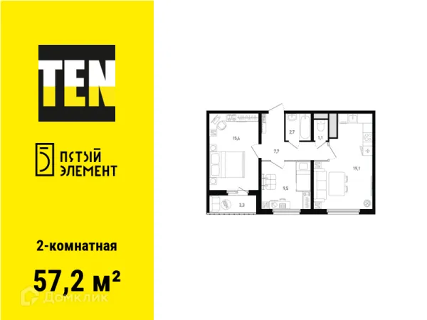 2 комн. квартира в Ростове-на-Дону в ипотеку от 26 711 руб/месяц